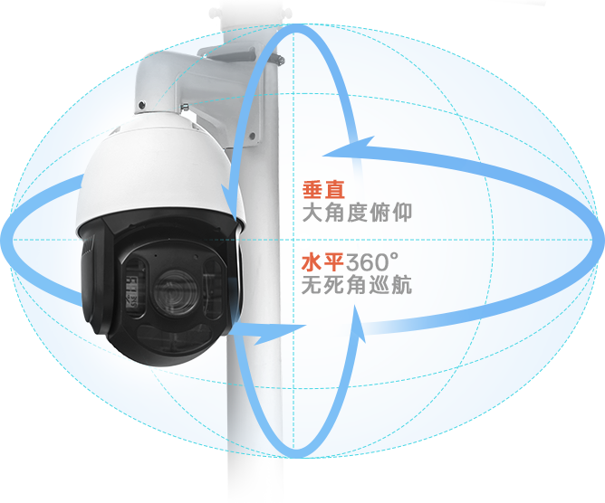 搭載高性能360°水平旋轉云臺,垂直大角度俯仰,多角度靈活調節,自動遠程控制,無死角巡航,突破空間限制,輕松覆蓋復雜場景。